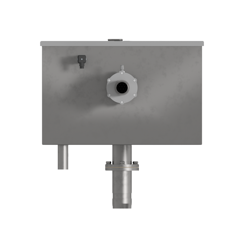 Бак поддержания уровня состоит из корпуса, на котором установлен пережимной клапан и датчик уровня. Подача реагентов в бак осуществляется через входной патрубок, а к стойкам дозаторов через выходной патрубок. Для предотвращения переполнения бака предусмотрена переливная труба. Для улавливания инородных тел в баке установлена решетка.