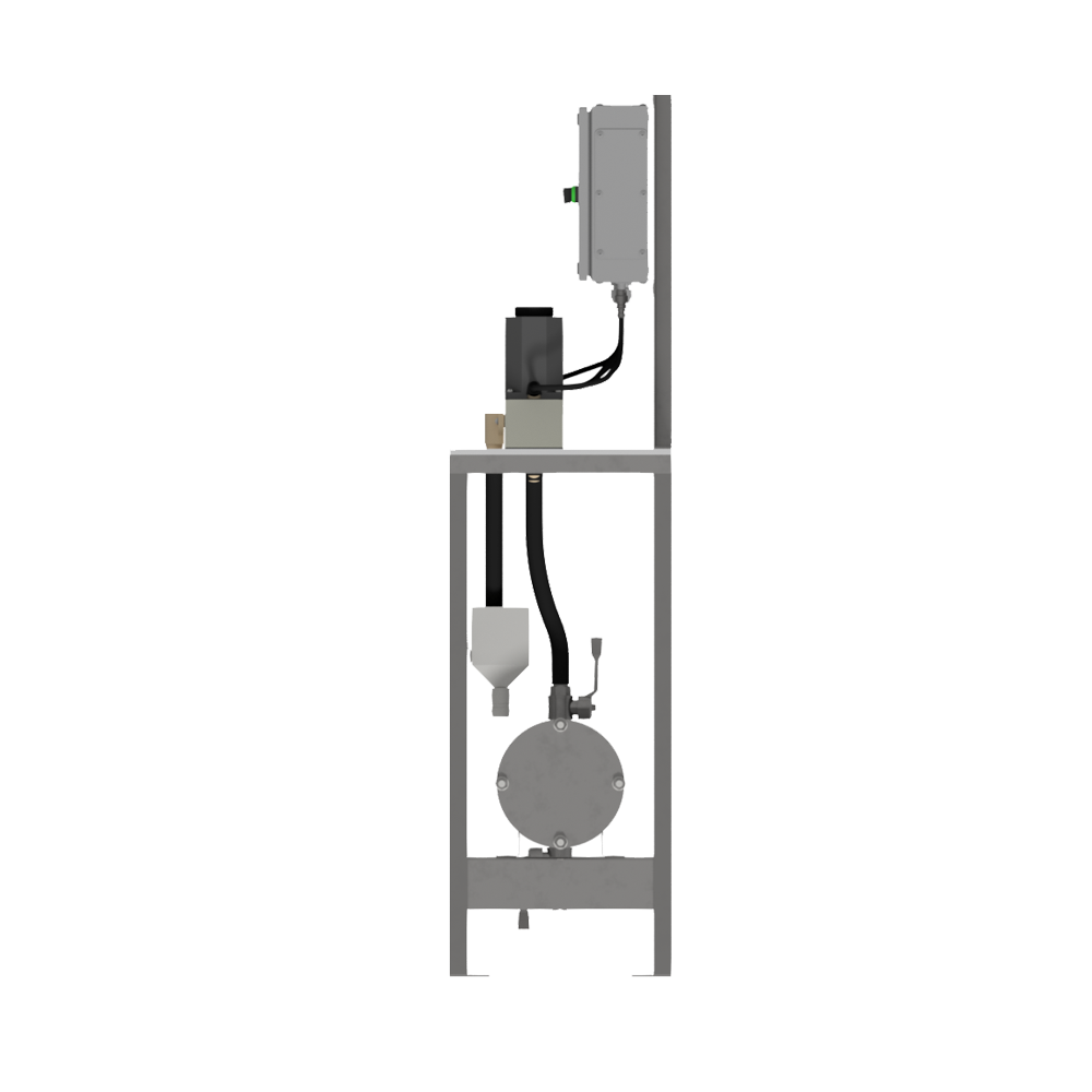 Сливной шланг питателя реагентов направлен в сливную воронку, которая с помощью шланга подключается к реагентопроводу, через который реагент поступает в технологический процесс. Установка работает в автоматическом режиме от шкафа управления системой.