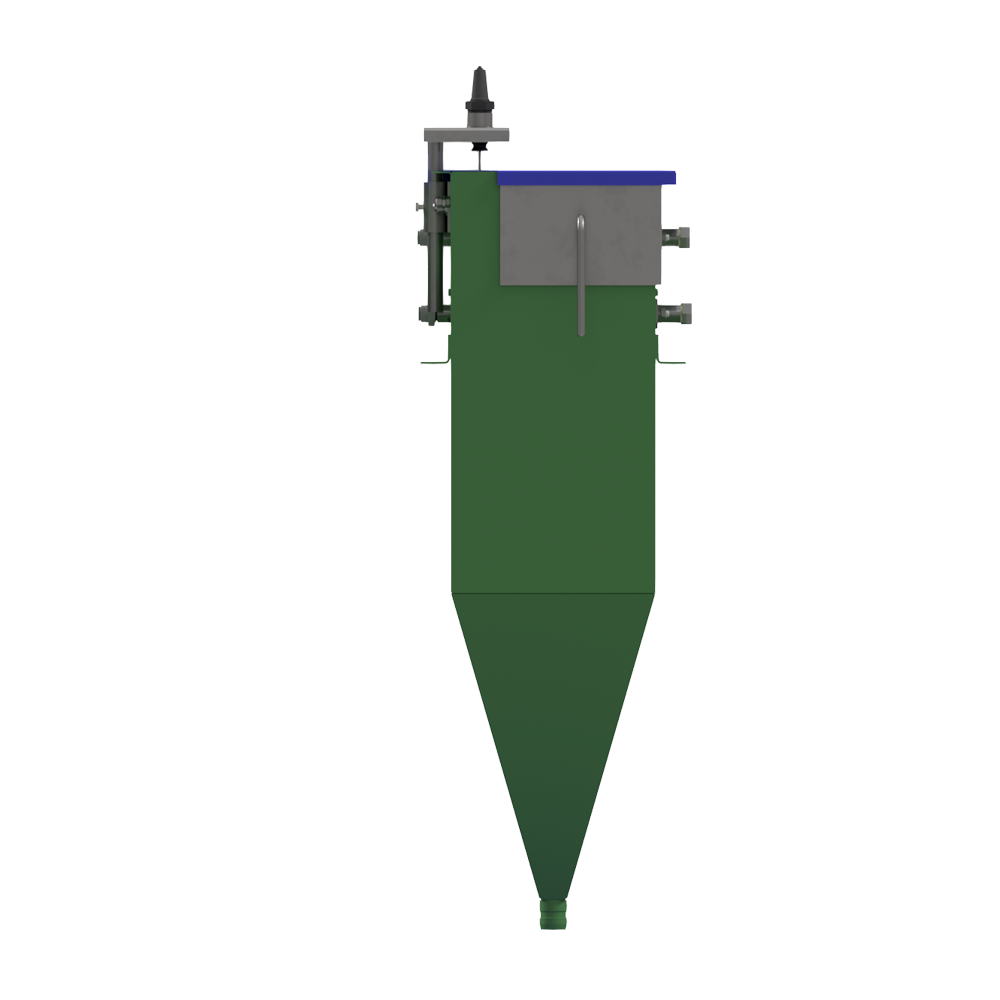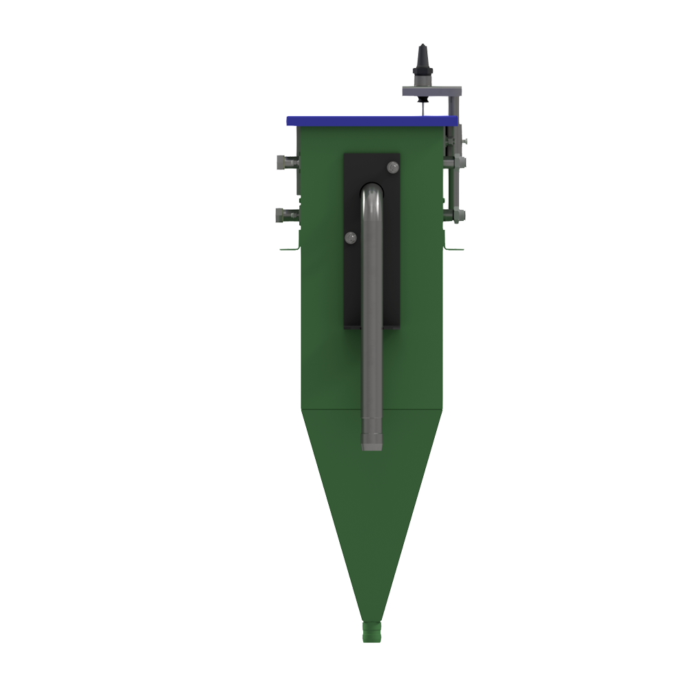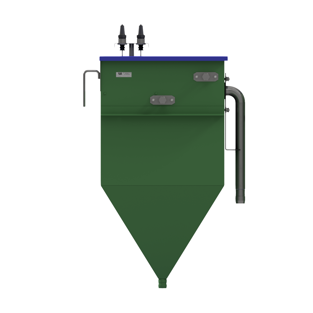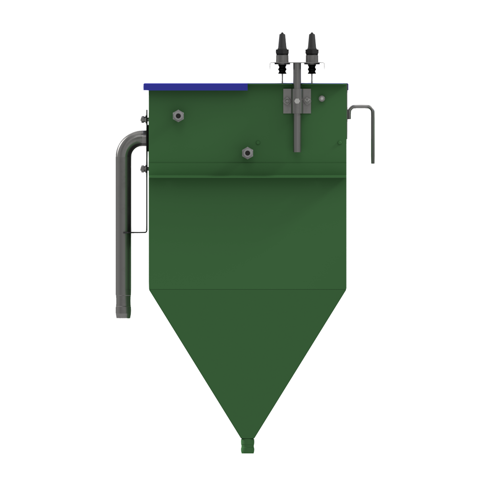 Бак состоит из металлического корпуса, в нижней части которого расположен выходной штуцер. Внутри корпуса размещена фильтрующая сетка, датчики уровня и форсунки промывки/пеногашения, На торце установлен кронштейн с отводом.